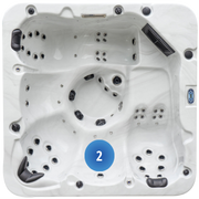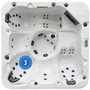 - Les cuisses, avec 4 hydrojets pour la jambe gauche et 4 jets pour la jambe droite et aussi 1 aérojet supplémentaire par cuisse pour accentuer la détente