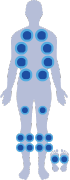 - 4 hydrojets sur le mollet gauche et 4 hydrojets sur le mollet droit