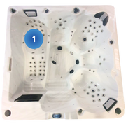 - Les mollets et l‘entièreté de la jambe avec 9 hydrojets pour la jambe gauche et 9 hydrojets pour la jambe droit