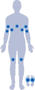 - Les mollets et l‘entièreté de la jambe avec 9 hydrojets pour la jambe gauche et 9 hydrojets pour la jambe droite