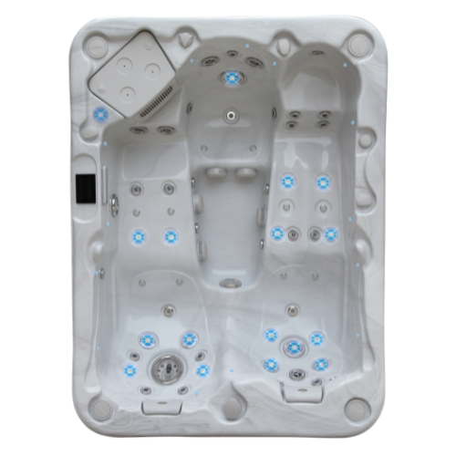 - 8 hydrojets et 2 aérojets qui vont masser l’entièreté des cuisses et mollets